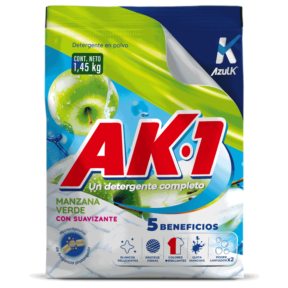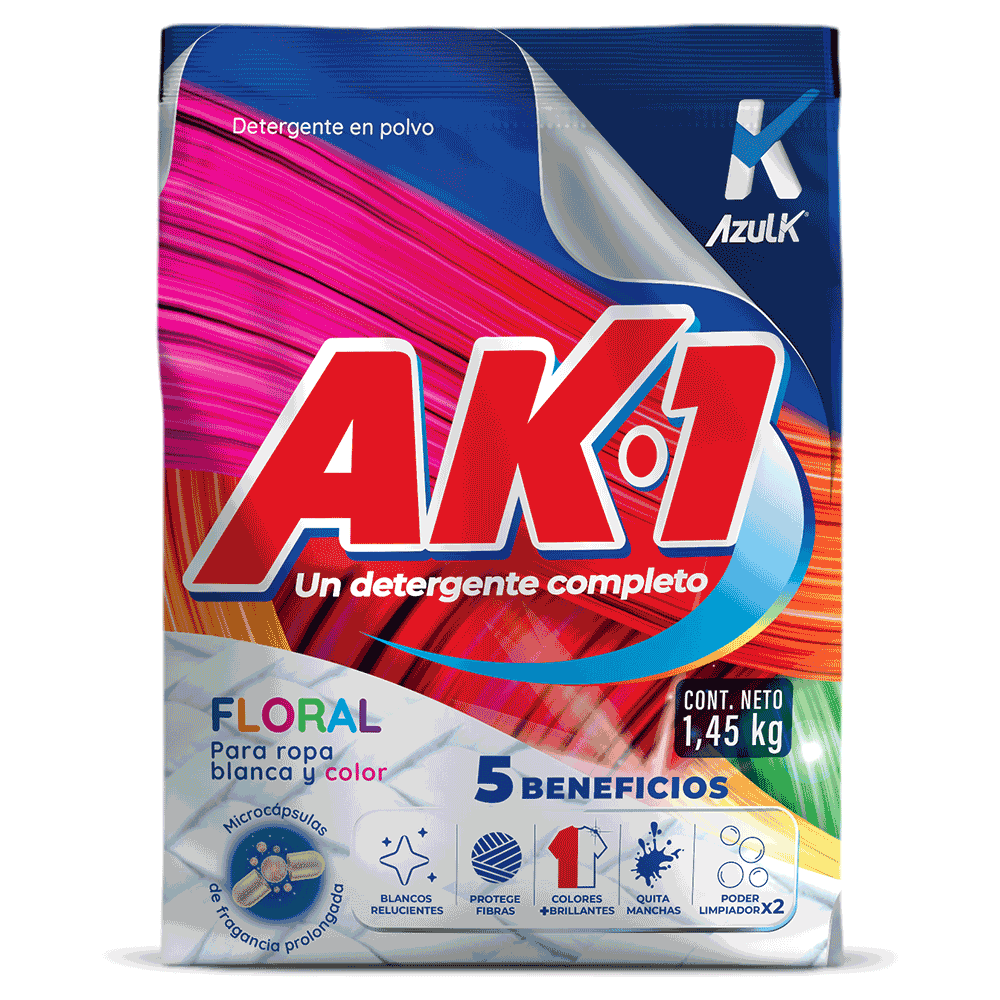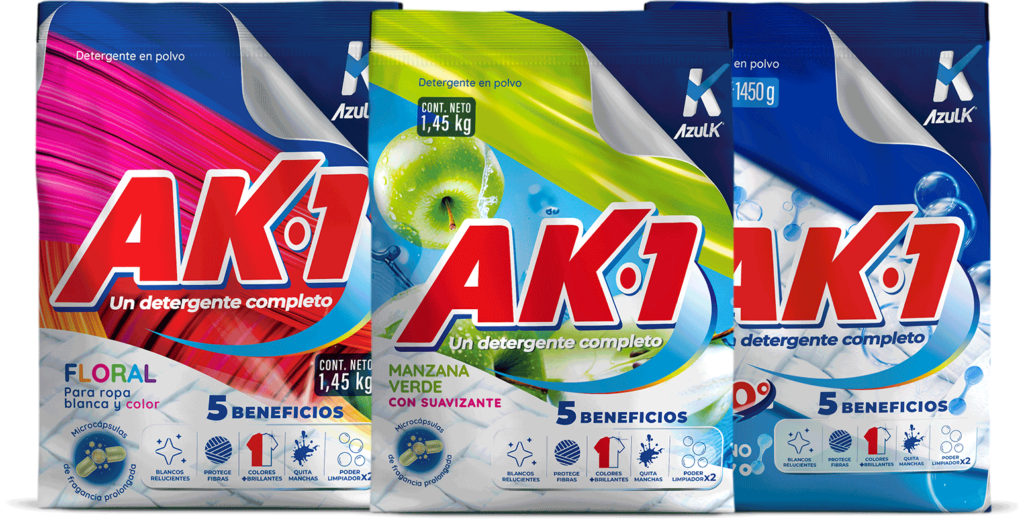 AK- 1 es un detergente que tiene como PROPÓSITO facilitar la vida de los usuarios con soluciones de limpieza modernas y eficientes para el lavado de las prendas.